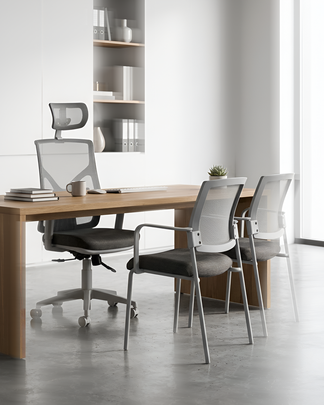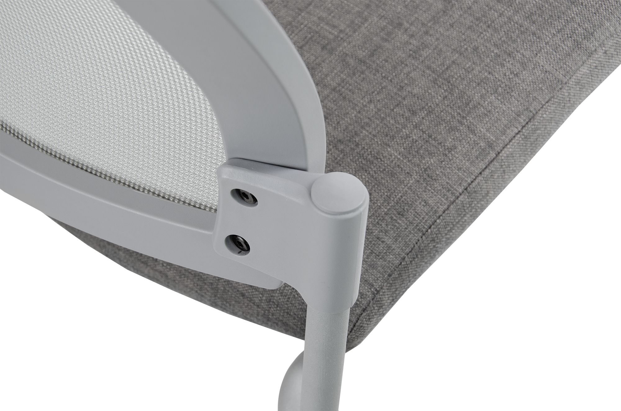 • Respaldo tapizado en tela de red mesh J1 gris.